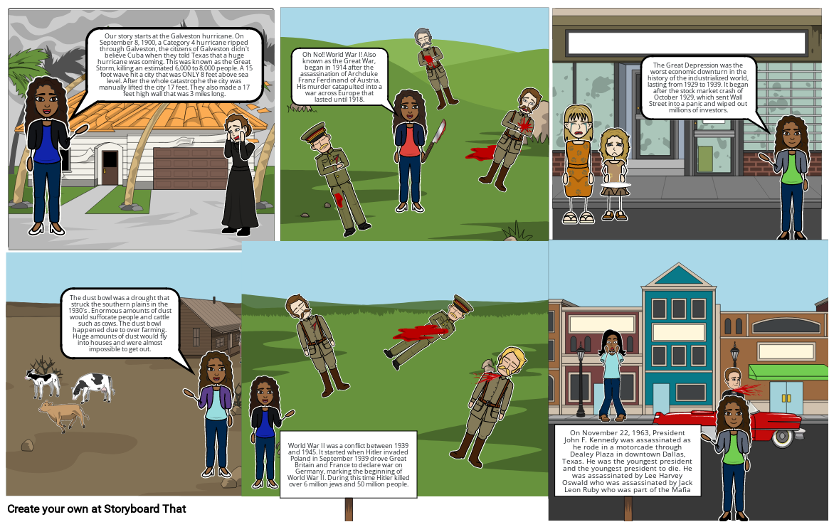 Our story starts at the Galveston hurricane. On September 8, 1900, a Category 4 hurricane ripped through Galveston, the citizens of Galveston didn't believe Cuba when they told Texas that a huge hurricane was coming. This was known as the Great Storm, killing an estimated 6,000 to 8,000 people. A 15 foot wave hit a city that was ONLY 8 feet above sea level. After the whole catastrophe the city was manually lifted the city 17 feet. They also made a 17 feet high wall that was 3 miles long.