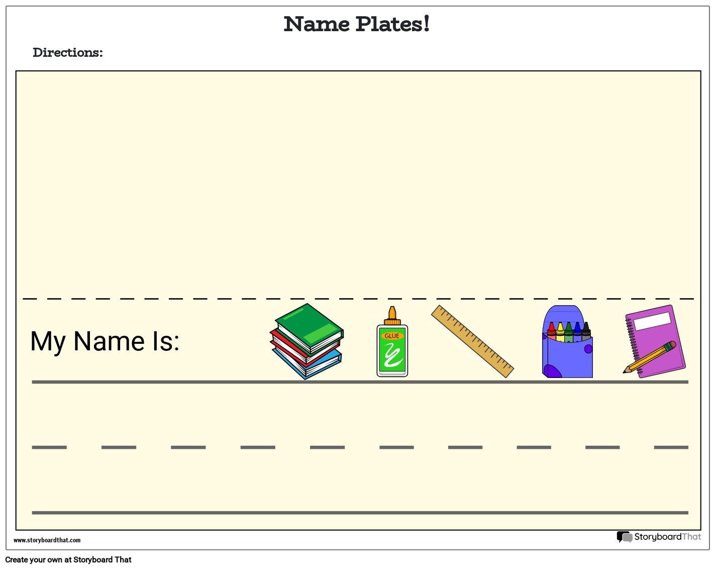 Прекрасно занимание за учениците за връщане в училище е да ги накарате да създават свои собствени табели с имена! Учениците могат да използват шаблона, за да добавят изкуство, което харесват от Създателя. След това табелката с името може да бъде отпечатана с помощта на стандартен принтер и учениците могат да упражняват писането си, като пишат на ръка имената си! Те могат да бъдат изрязани и ламинирани за употреба през цялата година!