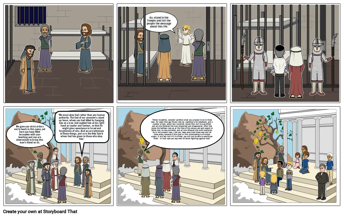 'Fellow-Israelites, consider carefully what you propose to do to these men. For some time ago Thuds rose up, claiming to be somebody, and a number of men, about four hundred, joined him; but he was killed, and all who followed him were dispersed and disappeared. After him Judas the Galilean rose up at the time of the census and got people to follow him; he also perished, and all who followed him were scattered. So in the present case, I tell you, keep away from these men and let them alone; because if this plan or this undertaking is of human origin, it will fail; but if it is of God, you will not be able to overthrow them - in that case you may even be found fighting against God!'