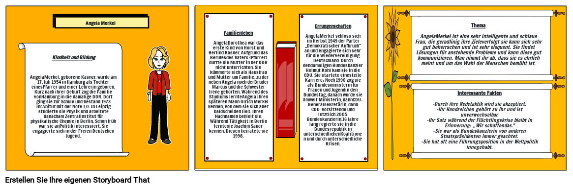 Interessante Fakten-Durch ihre Redetaktik wird sie akzeptiert.-Ihr Handzeichen gehört zu ihr und ist unverwechselbar.-Ihr Satz während der Flüchtlingskrise bleibt in Erinnerung: ,,Wir schaffendas.-Sie war als Bundeskanzlerin von anderen Staatspräsidenten immer geachtet.-Sie hat oft eine Führungsposition in der Weltpolitik innegehabt.