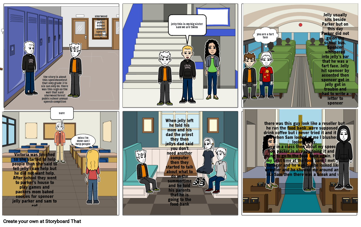 the story is about this speechcontest that only grade 3 to six can only do. there was this sign on the wall that said sherwood forest public school annual speech compition