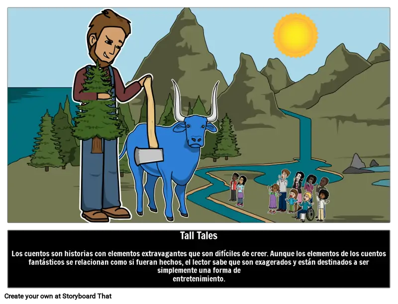Tall Tales Los cuentos son historias con elementos extravagantes que son difíciles de creer. Aunque los elementos de los cuentos fantásticos se relacionan como si fueran hechos, el lector sabe que son exagerados y están destinados a ser simplemente una forma de entretenimiento.