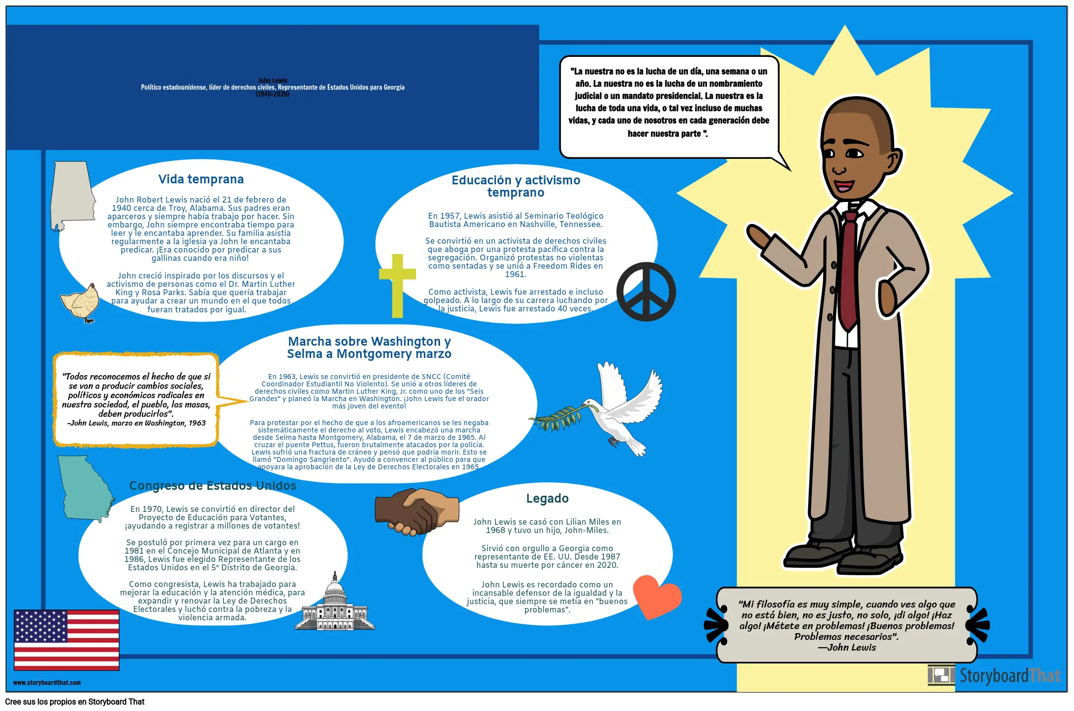 "Mi filosofía es muy simple, cuando ves algo que no está bien, no es justo, no solo, ¡di algo! ¡Haz algo! ¡Métete en problemas! ¡Buenos problemas! Problemas necesarios". —John Lewis
