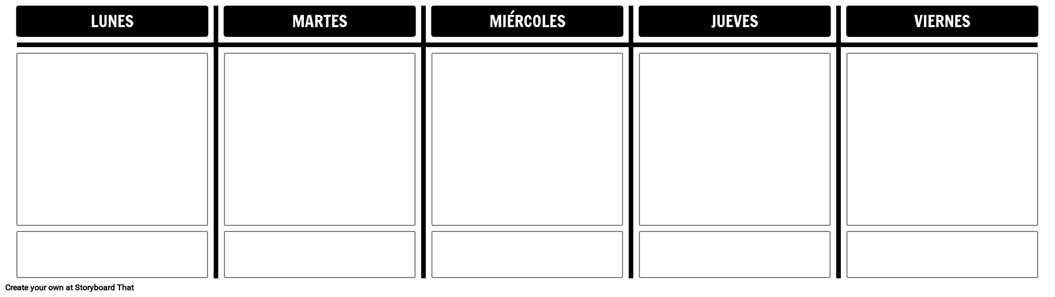 Plantilla de lunes a viernes usando el diseño de T-Chart. ¡Agregue dos celdas más durante una semana completa!