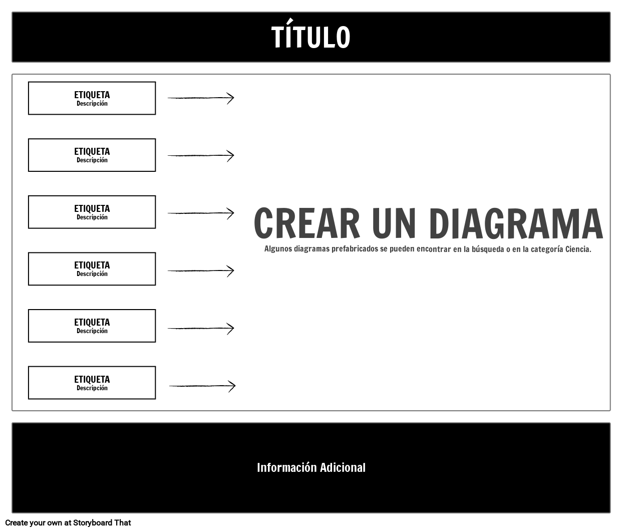 Plantilla de diagrama en blanco con cuadro de descripción: busque nuestros diagramas ya preparados o cargue uno propio. Mueva etiquetas y flechas para identificar