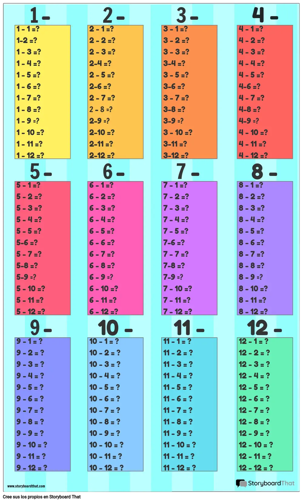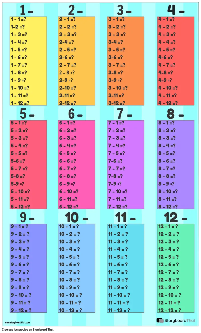 Cree carteles de tablas de resta personalizados para su salón de clases