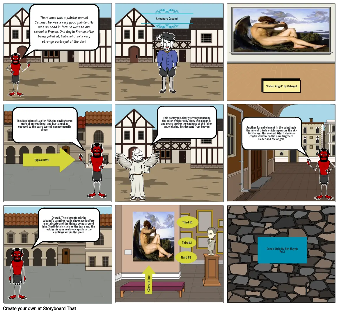 There once was a painter named Cabanel. He was a very good painter. He was so good in fact he went to art school in France. One day in France after being yelled at, Cabanel drew a very strange portrayal of the devil