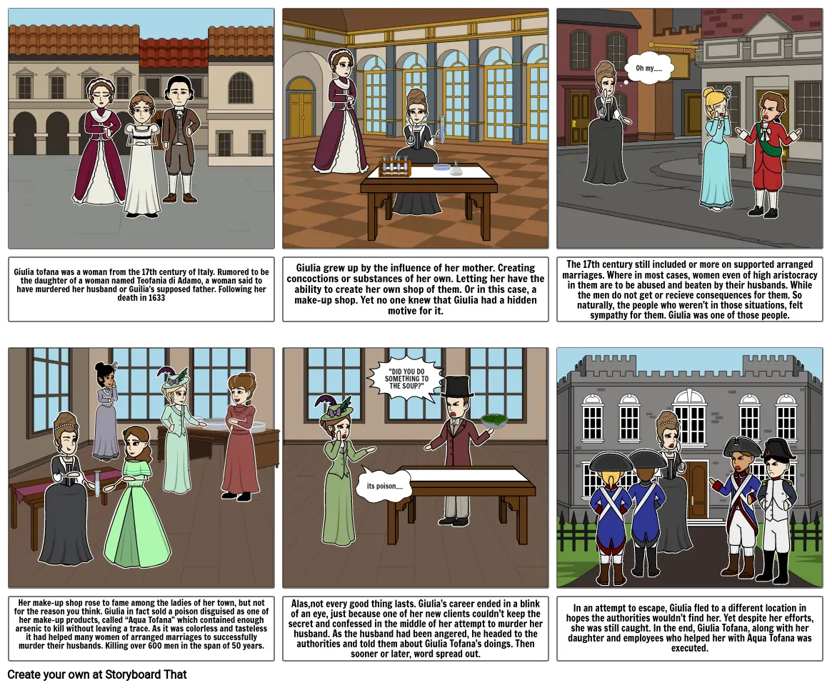 Alas,not every good thing lasts. Giulia’s career ended in a blink of an eye, just because one of her new clients couldn’t keep the secret and confessed in the middle of her attempt to murder her husband. As the husband had been angered, he headed to the authorities and told them about Giulia Tofana’s doings. Then sooner or later, word spread out.
