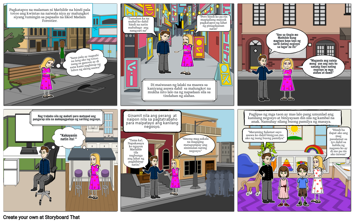 "Ano sa tingin mo Mathilde kung magtayo kaya tayo ng sarili nating negosyo sa lugar na ito"