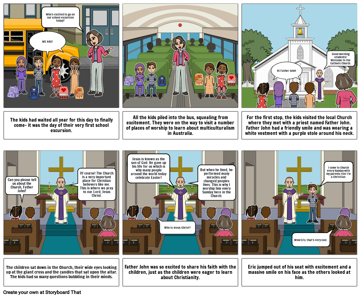The children sat down in the Church, their wide eyes looking up at the giant cross and the candles that sat upon the altar. The kids had so many questions bubbling in their minds.