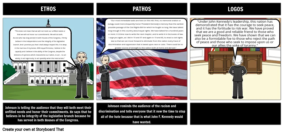 Johnson reminds the audience of the racism and discrimination and tells everyone that it now the time to stop all of the hate because that is what John F. Kennedy would have wanted.