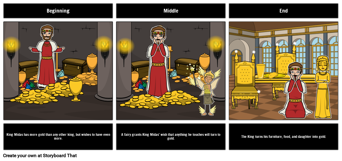 King Midas has more gold than any other king, but wishes to have even more.