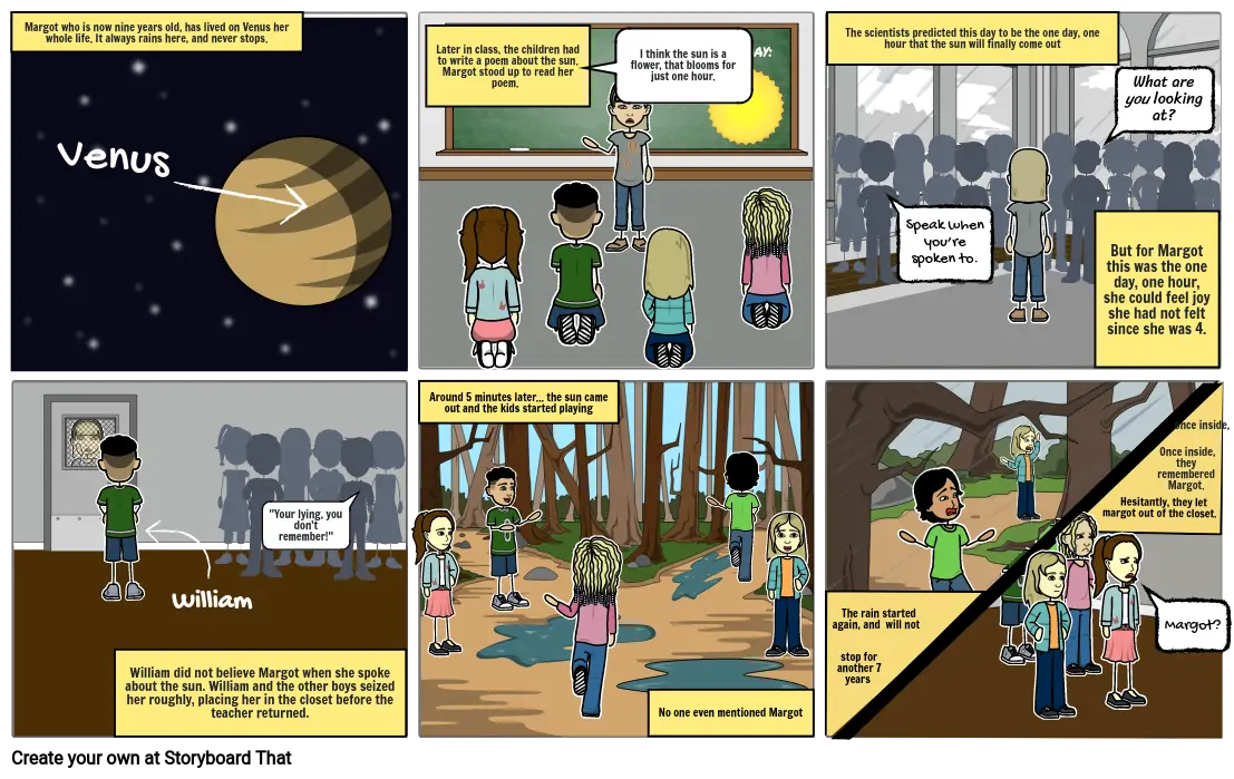 William did not believe Margot when she spoke about the sun. William and the other boys seized her roughly, placing her in the closet before the teacher returned.