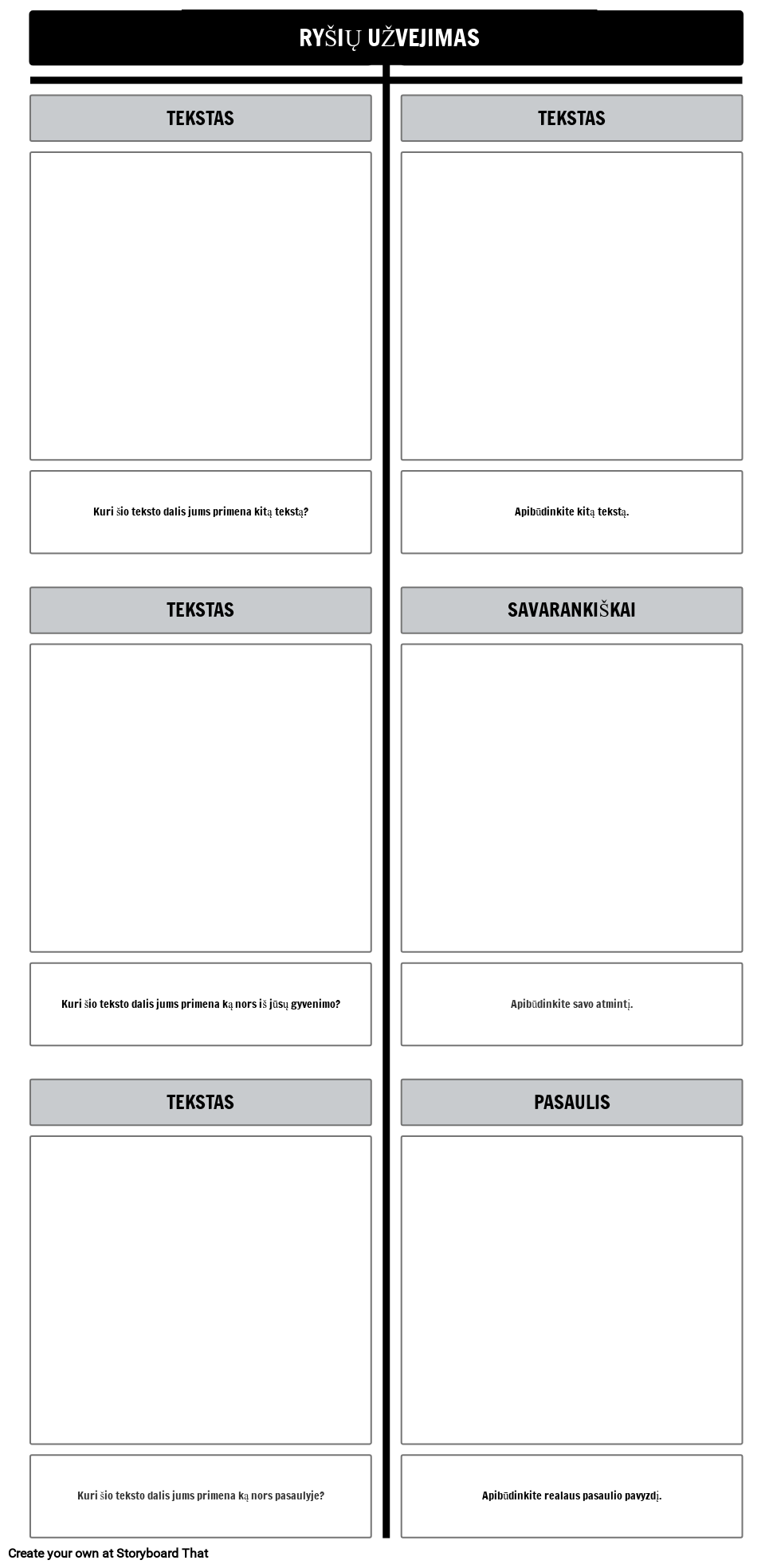 Teksto jungčių T diagramos šablonas | Paprašykite mokinių susieti tekstą su kita knyga, su savimi ir pasauliu