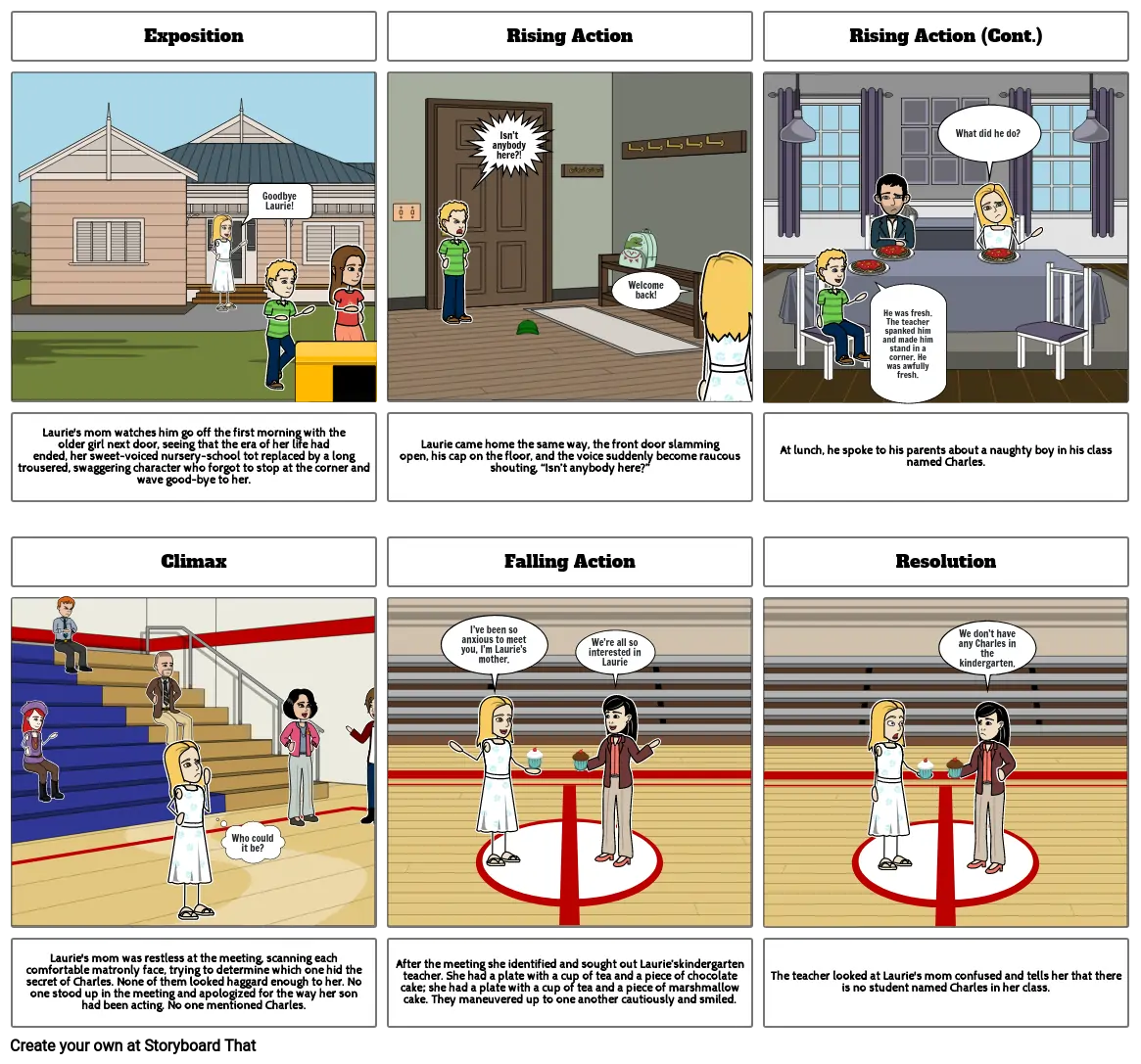 The teacher looked at Laurie's mom confused and tells her that there is no student named Charles in her class.