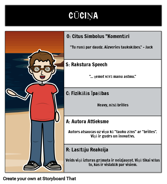 Autors atsaucas uz viņu kā "tauku zēns" ar "brilles". Viņš ir gudrs un inovatīvs.