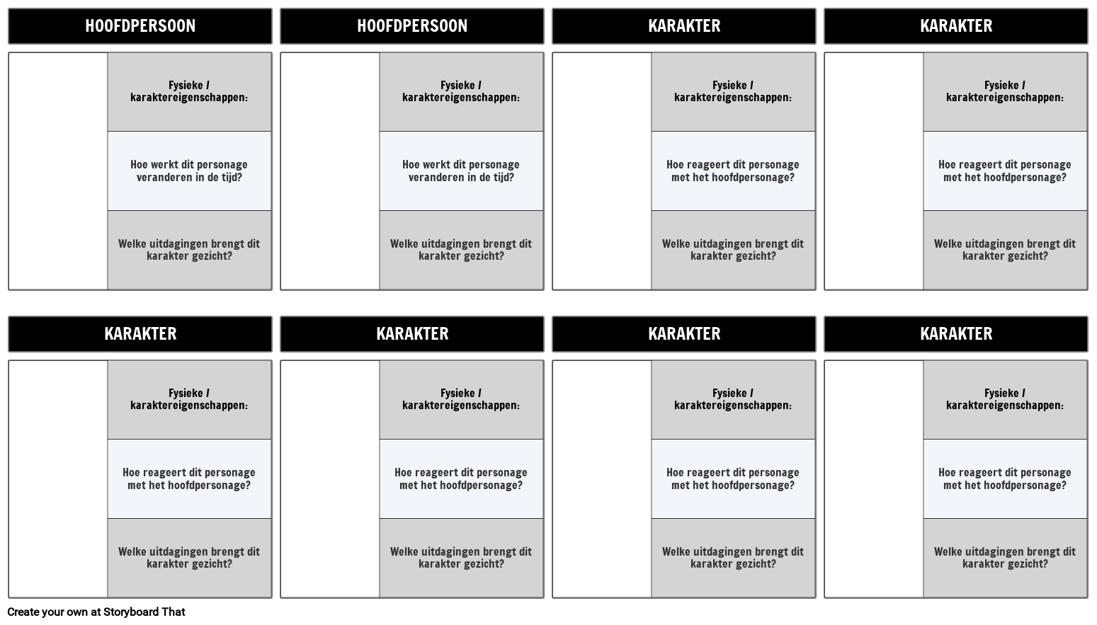 Fysieke / karaktereigenschappen: Hoe reageert dit personage met het hoofdpersonage? Welke uitdagingen brengt dit karakter gezicht?