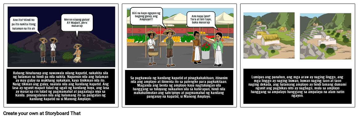 Sa pagkawala ng kanilang kapatid at pinagkakakitaan, itinanim nila ang amplayo at ibinenta ito sa palengke para pagkakitaan. Maganda ang benta ng amplayo kaya nagtulungan sila hanggang sa tuluyang nakaahon sila sa kahirapan, hindi nila makakalimutan ang sakripisyo at pagmamahal ng kanilang panganay na kapatid, si Manong Amplayo.