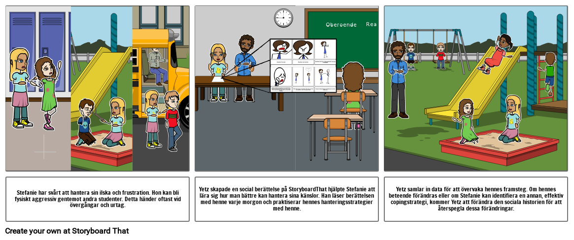 Yetz skapade en social berättelse på StoryboardThat hjälpte Stefanie att lära sig hur man bättre kan hantera sina känslor. Han läser berättelsen med henne varje morgon och praktiserar hennes hanteringsstrategier med henne.