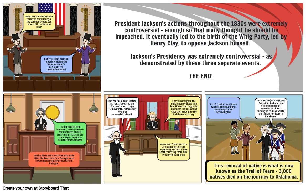 President Jackson's actions throughout the 1830s were extremely controversial - enough so that many thought he should be impeached. It eventually led to the birth of the Whig Party, led by Henry Clay, to oppose Jackson himself. Jackson's Presidency was extremely controversial - as demonstrated by these three separate events. THE END!