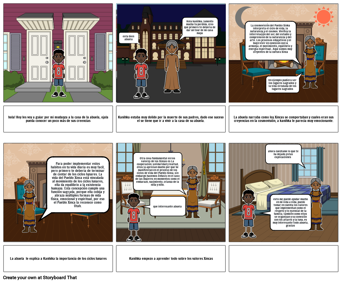 La abuela narraba como los Xincas se comportaban y cuales eran sus creyencias en la cosmovisión, a kanihka le parecia muy emocionante.