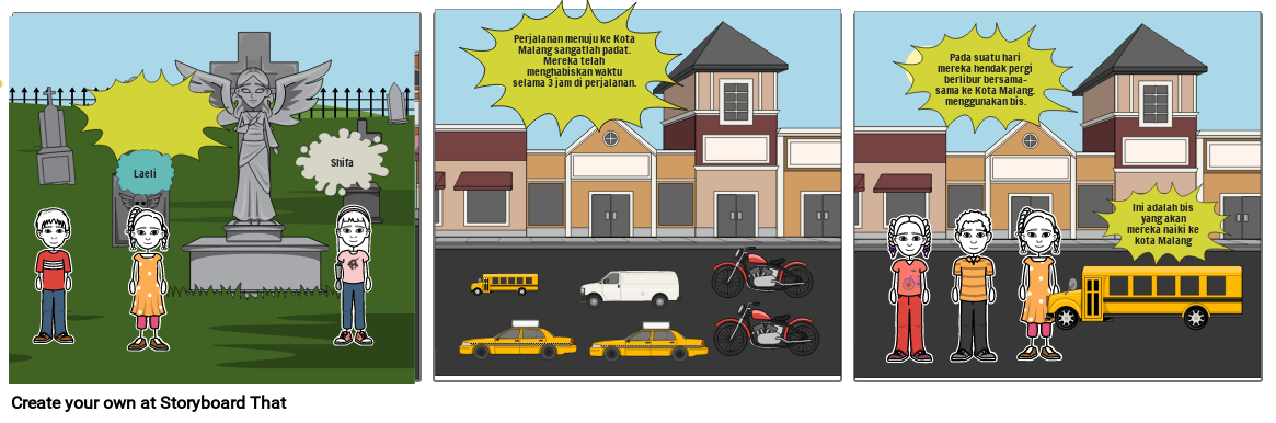 Pada suatu hari mereka hendak pergi berlibur bersama-sama ke Kota Malang. menggunakan bis.