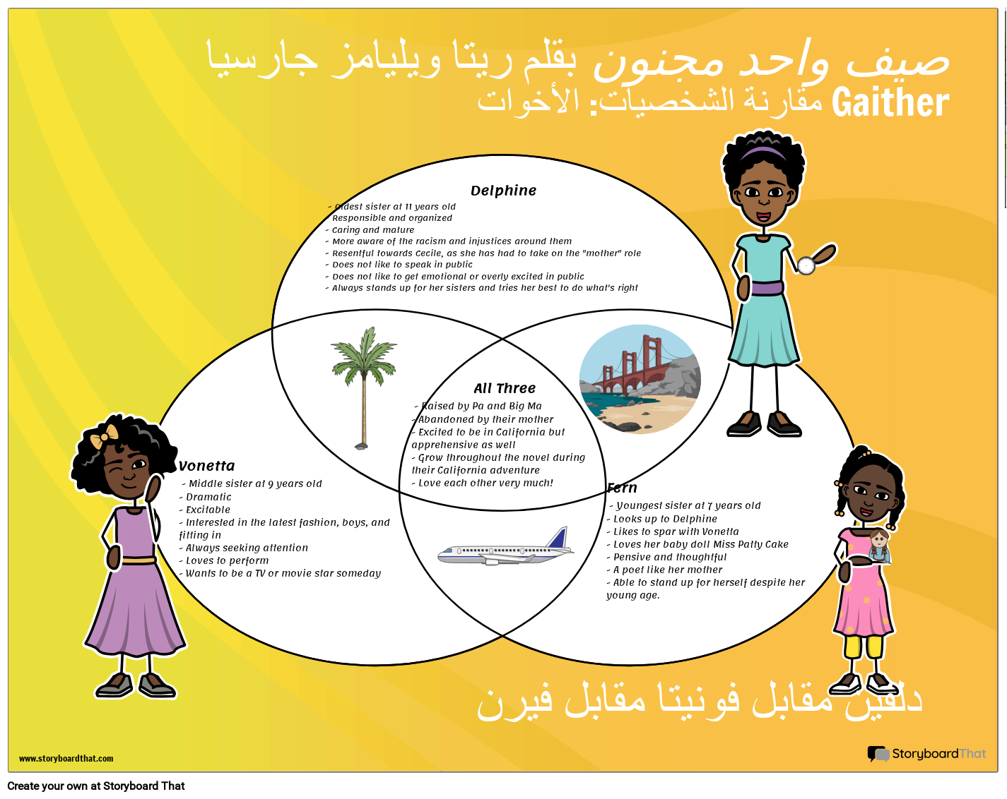 قارن وقارن بين شخصيتين أو ثلاث شخصيات من One Crazy Summer بقلم ريتا ويليامز جارسيا