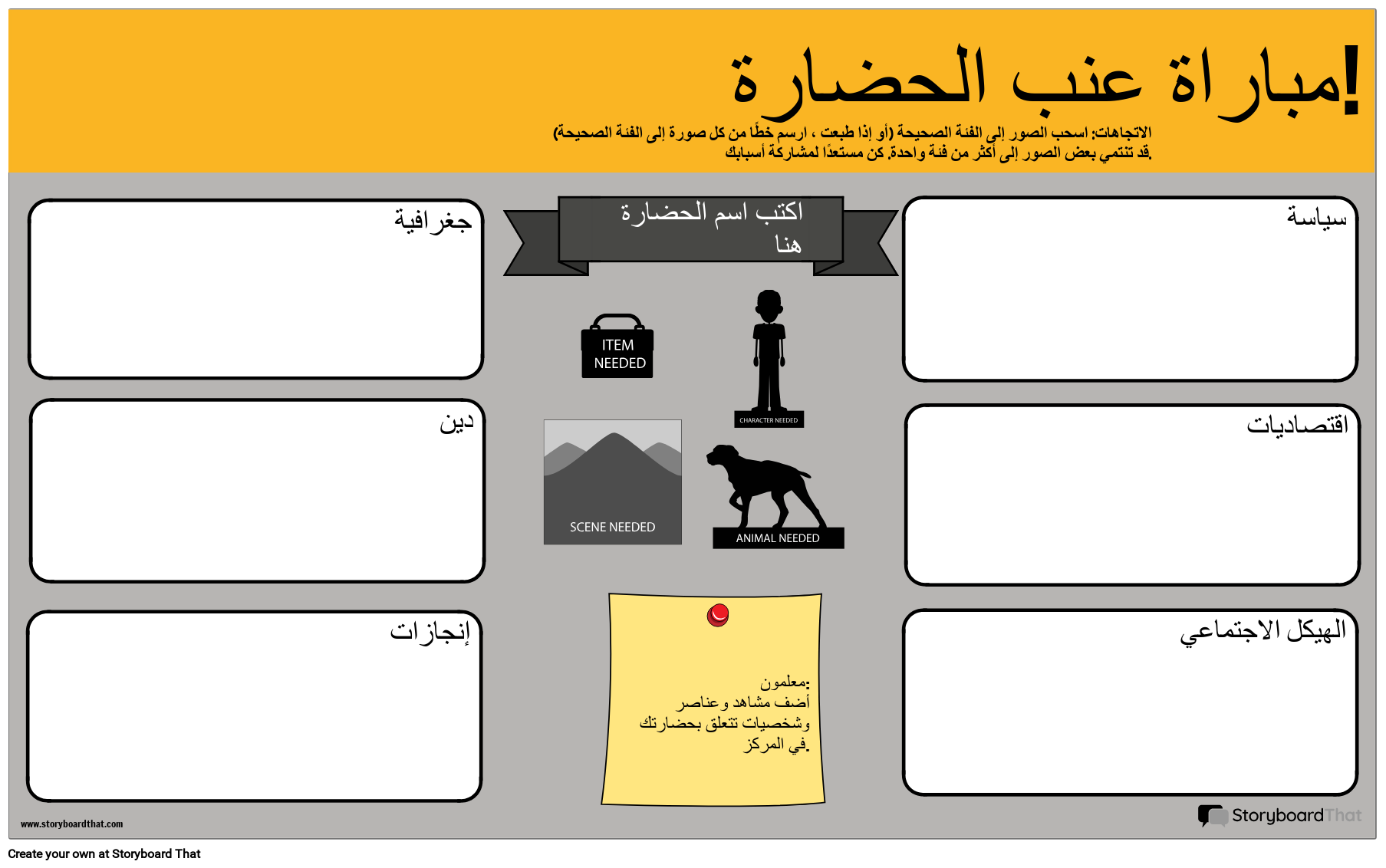 معلمون: أضف مشاهد وعناصر وشخصيات تتعلق بحضارتك في المركز.