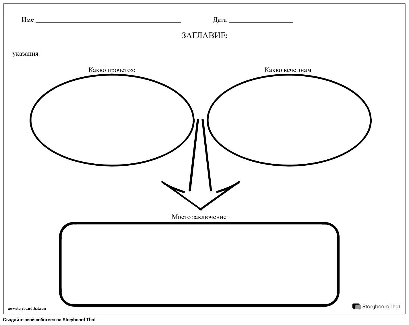 Какво съм Прочел, Какво Знам Работен Лист за Изводи