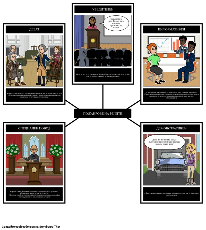 • Има за цел да вдъхнови или убеди публиката да предприеме действие или да приеме гледната точка на говорещия