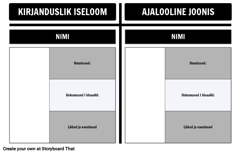 Allegooria tähemärgi T-diagrammi mall - kasutage seda malli, et võrrelda kirjanduslikke tegelasi ajalooliste tegelastega.