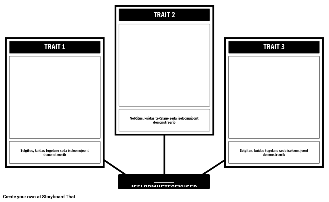 Märkide iseloomu mall ämblikkaardil. Tuvastage kolm iseloomuomadust ja kujutage neid süžeeskeemil.