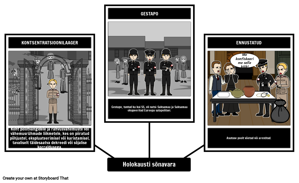 Looge visuaalse sõnavara tahvel terminitele, mis on seotud poisi puukastis ja holokaustiga