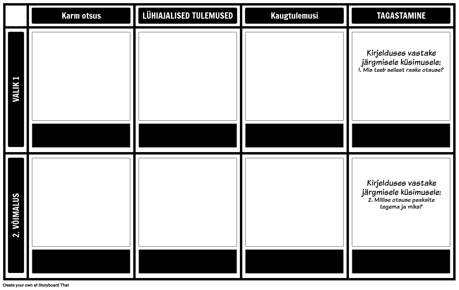 Kirjelduses vastake järgmisele küsimusele: 1. Mis teeb sellest raske otsuse?
