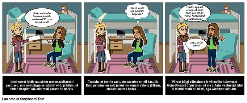 Teadsin, et testile vastuste saamine on nii kasulik. Kuid petmine on vale ja kui ma kunagi vahele jääksin, oleksin suures hädas ...