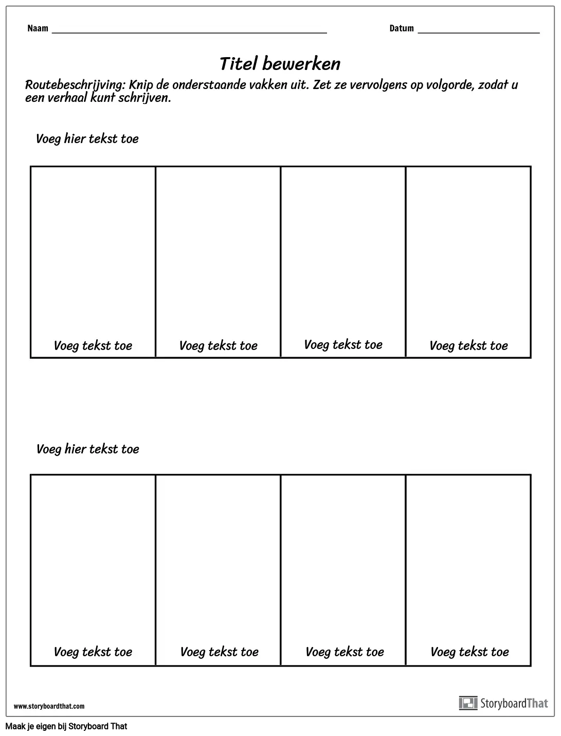 Routebeschrijving: Knip de onderstaande vakken uit. Zet ze vervolgens op volgorde, zodat u een verhaal kunt schrijven.