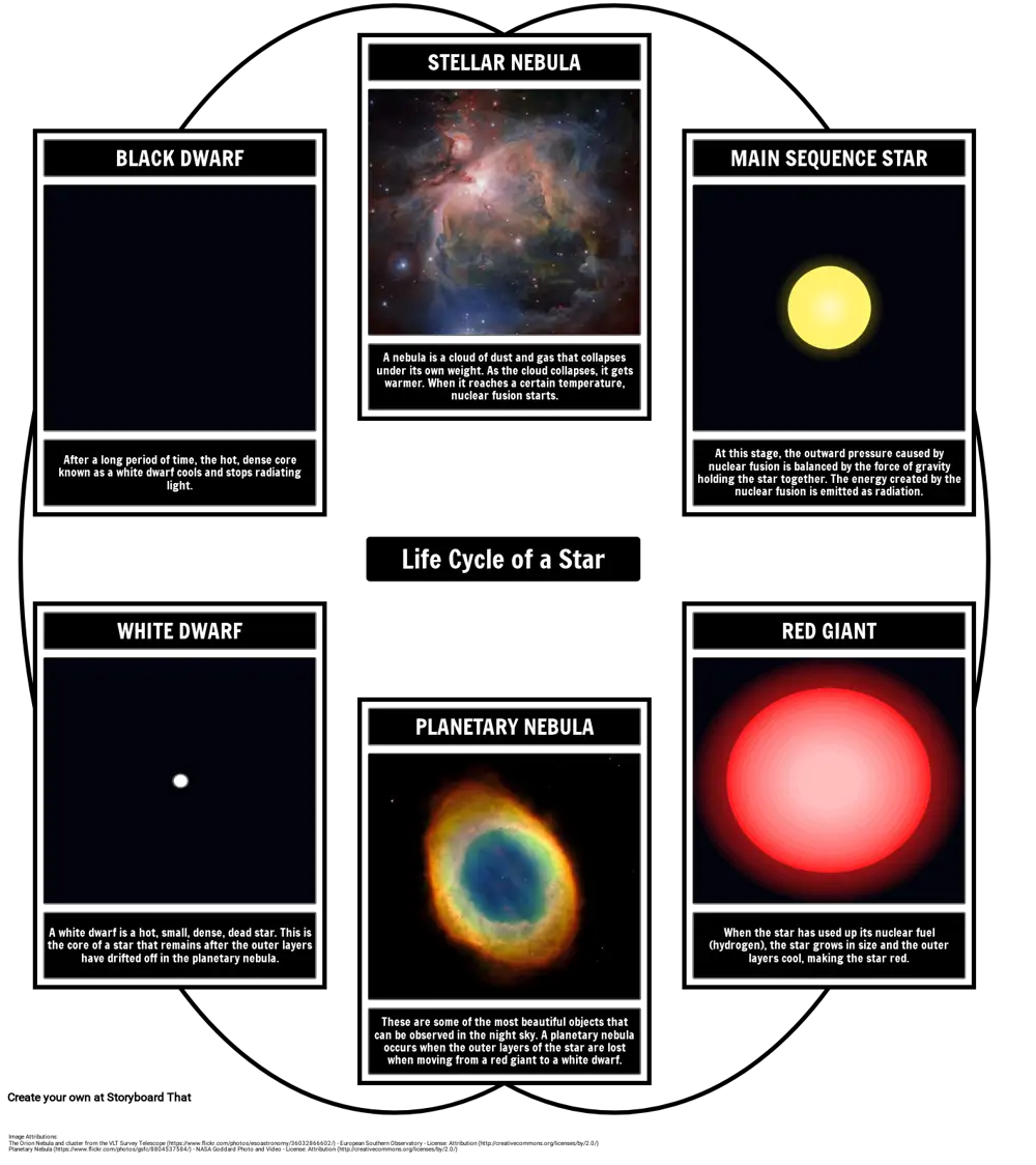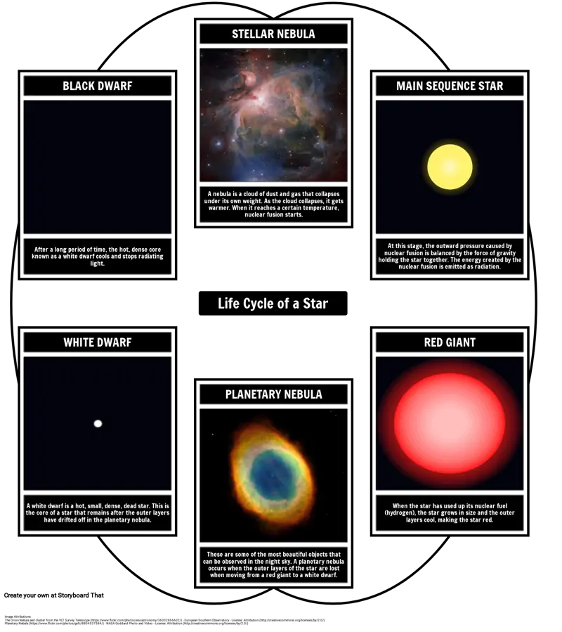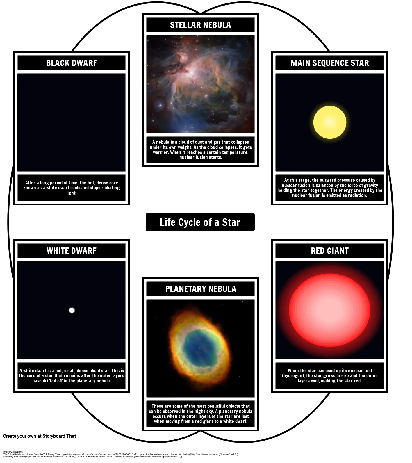 Använd ett cykeldiagram eller ett cirkeldiagram för att illustrera en stjärnas livscykel i Science and Astronomy -klasser!
