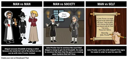 Sisäinen ja ulkoinen taistelu monien ihmisten välillä ja Salemin noitaoikeudenkäyntejä ympäröivät rajoittavat kulttuuriset säännöt ja kiihko muodostavat "The Cruciblen" suurimman kirjallisen konfliktin. Oppilaat voivat pohtia tämän konfliktin seurauksia ja syitä saadakseen tarinan syvemmän käsityksen.