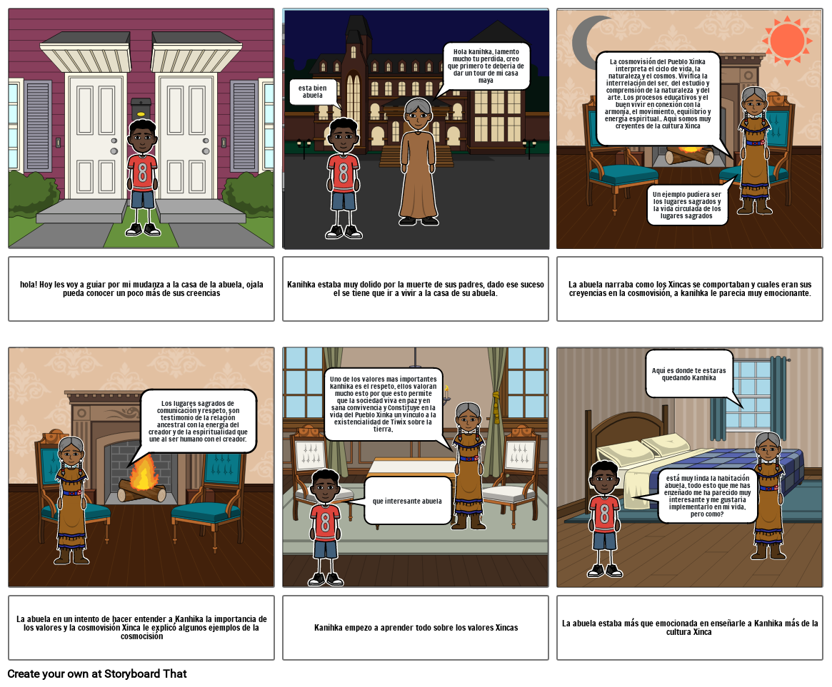 La abuela narraba como los Xincas se comportaban y cuales eran sus creyencias en la cosmovisión, a kanihka le parecia muy emocionante.