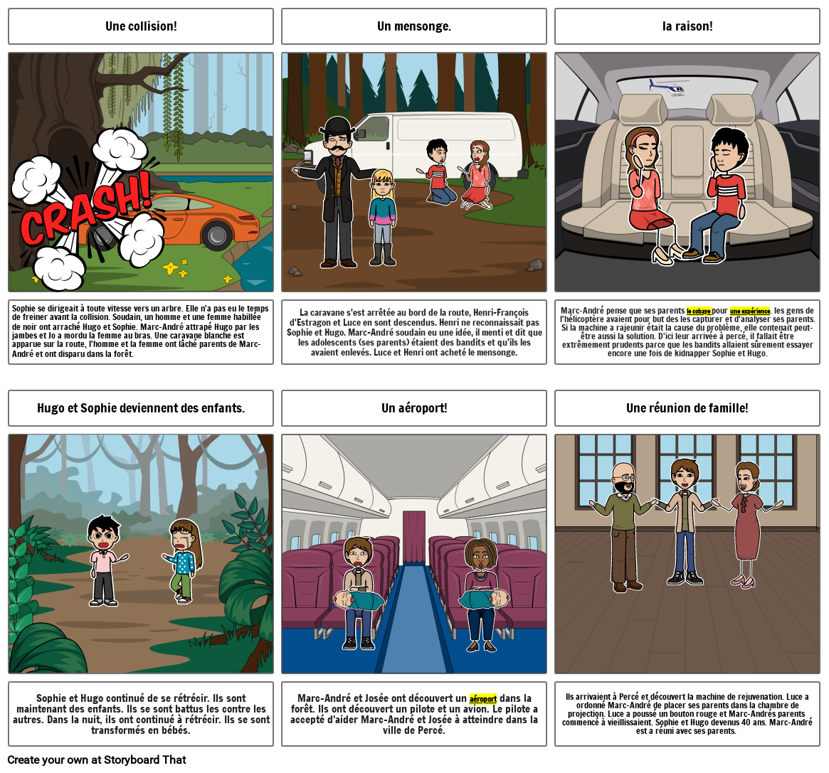 Marc-André pense que ses parents le cobaye pour une expérience. les gens de l'hélicoptère avaient pour but des les capturer et d'analyser ses parents. Si la machine a rajeunir était la cause du problème, elle contenait peut-être aussi la solution. D'ici leur arrivée à percé, il fallait être extrêmement prudents parce que les bandits allaient sûrement essayer encore une fois de kidnapper Sophie et Hugo.