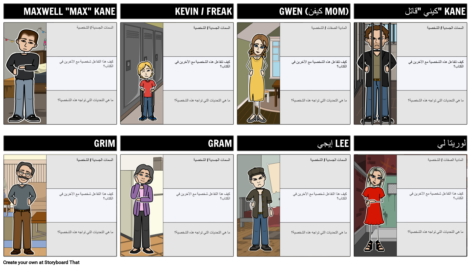 يمكن للطلاب رسم شخصيات Freak the Mighty والكتابة عن كل سمات جسدية / شخصية وتفاعلاتهم مع الآخرين والتحديات التي يواجهونها.