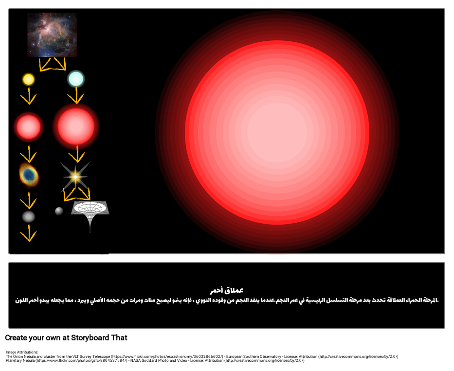 عملاق أحمر المرحلة الحمراء العملاقة تحدث بعد مرحلة التسلسل الرئيسية في عمر النجم.عندما ينفد النجم من وقوده النووي ، فإنه ينمو ليصبح مئات ومرات من حجمه الأصلي ويبرد ، مما يجعله يبدو أحمر اللون.