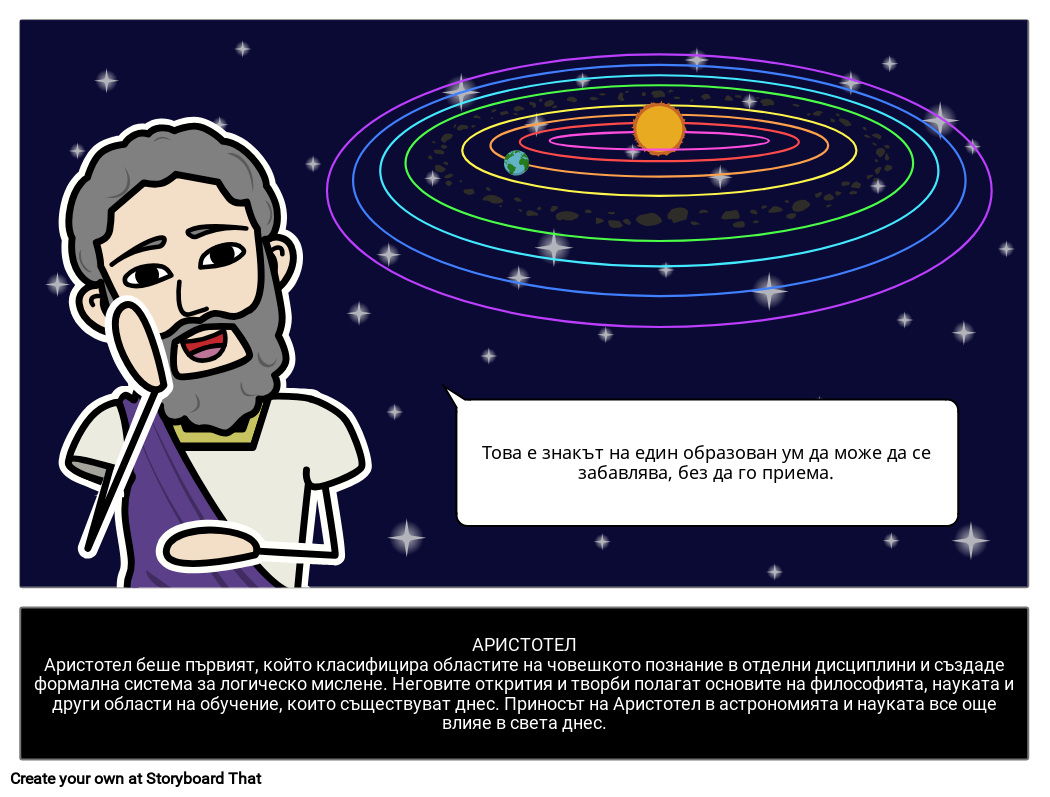 АРИСТОТЕЛАристотел беше първият, който класифицира областите на човешкото познание в отделни дисциплини и създаде формална система за логическо мислене. Неговите открития и творби полагат основите на философията, науката и други области на обучение, които съществуват днес. Приносът на Аристотел в астрономията и науката все още влияе в света днес.