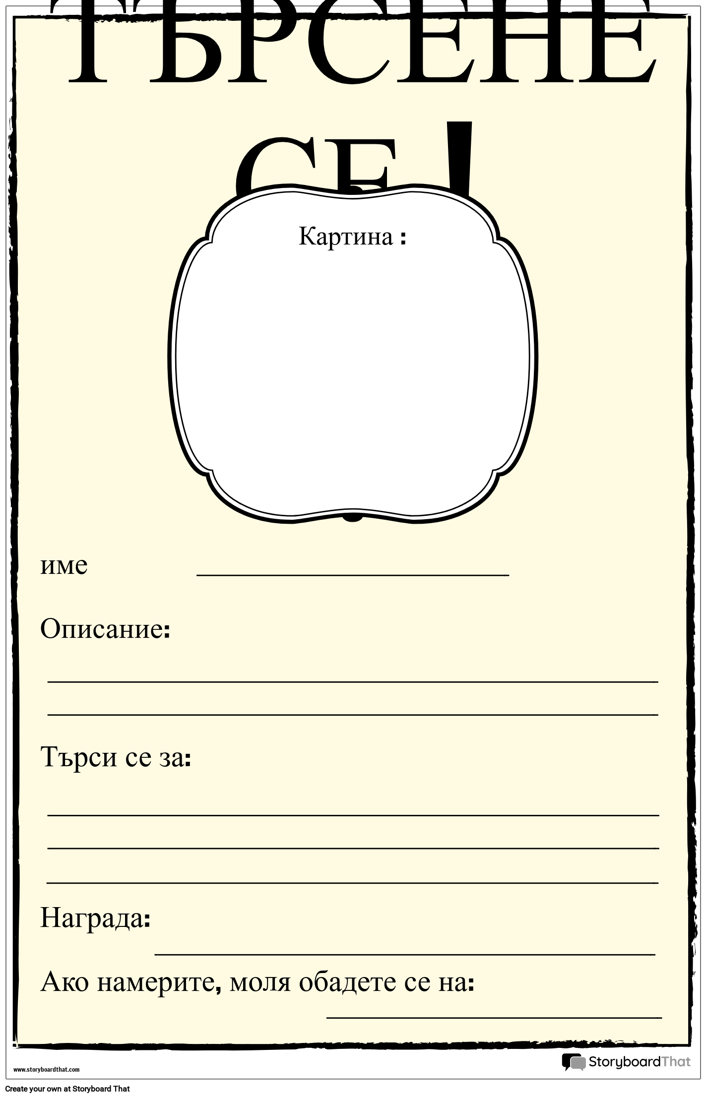 име Описание: Търси се за: Награда: Ако намерите, моля обадете се на: