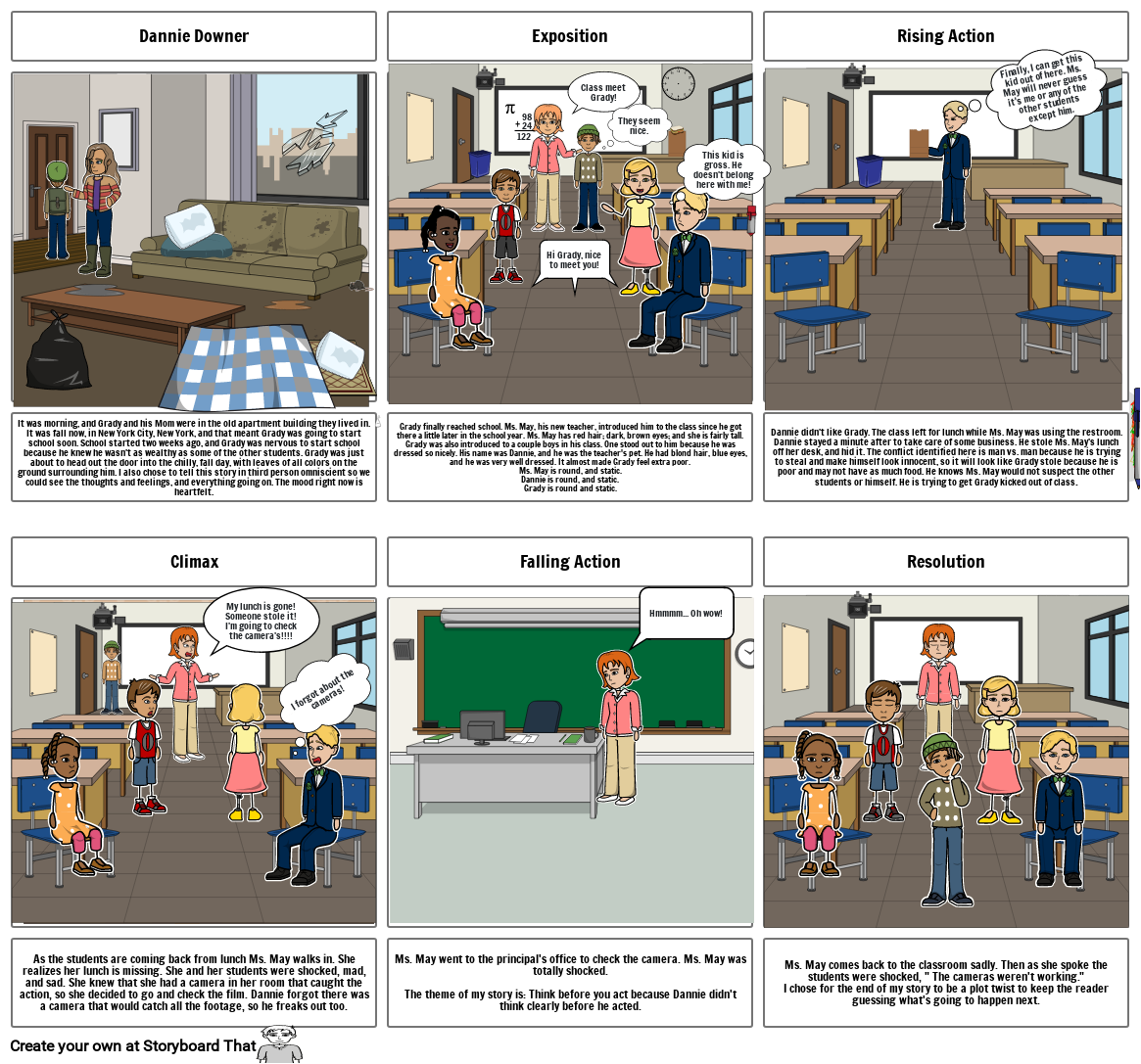 As the students are coming back from lunch Ms. May walks in. She realizes her lunch is missing. She and her students were shocked, mad, and sad. She knew that she had a camera in her room that caught the action, so she decided to go and check the film. Dannie forgot there was a camera that would catch all the footage, so he freaks out too.