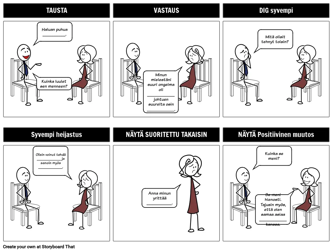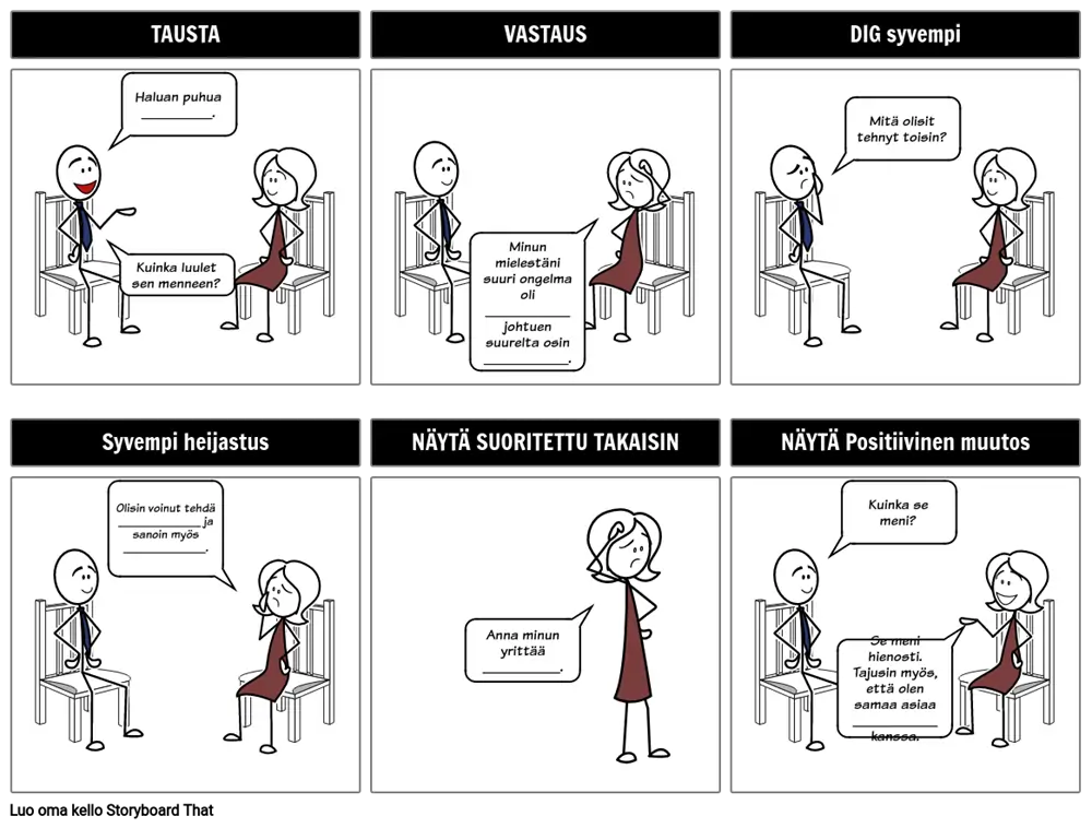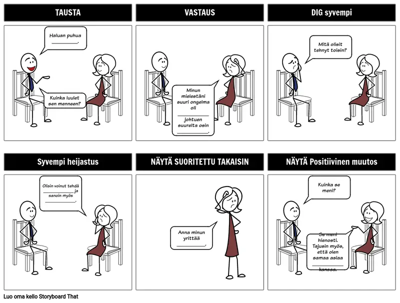Todellisuus ihmisten kanssa työskentelyssä on ajoittain vaikeiden keskustelujen tarve. Kuvakäsikirjoituksen avulla kirjoittaja voi helpommin ennustaa, miten toinen henkilö reagoi kuvakäsikirjoitusmuodon keskusteluluonteen vuoksi. Kuvakäsikirjoitukset ovat hyödyllisiä myös mentoroitaessa jotakuta: ohjata häntä vaikean keskustelun läpi, jotta hän näkee tilanteen molemmat puolet.