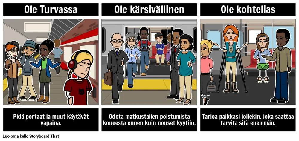 Esimerkkejä julkisista ilmoituksista: Kuinka ajaa metrolla. Tee PSA kuvakäsikirjoituksen avulla