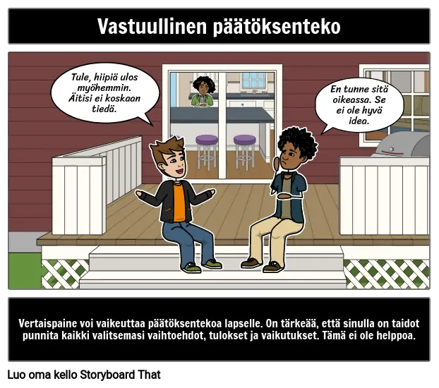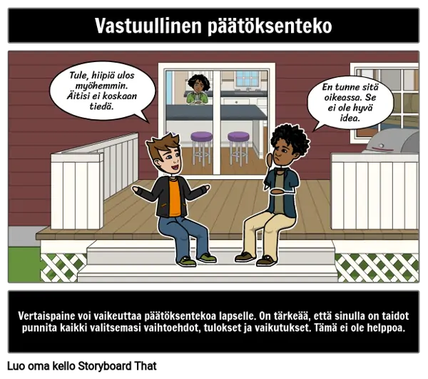 Vertaispaine voi vaikeuttaa päätöksentekoa lapselle. On tärkeää, että sinulla on taidot punnita kaikki valitsemasi vaihtoehdot, tulokset ja vaikutukset. Tämä ei ole helppoa.