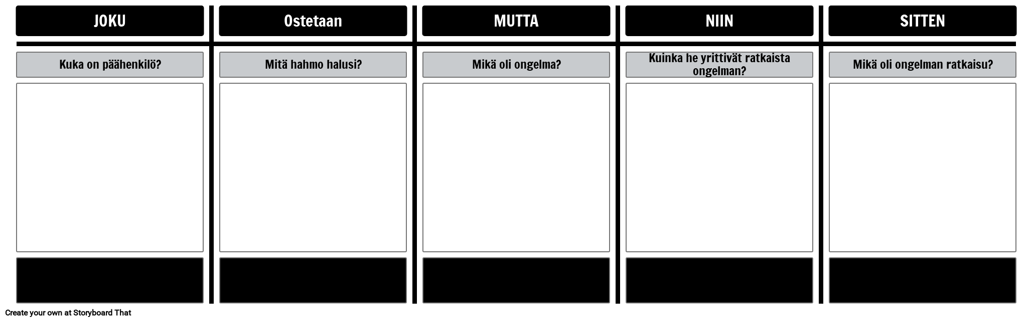 Joku halusi mutta niin sitten - 5-soluinen T-kaavion malli tarinan analysointiin Storyboard That