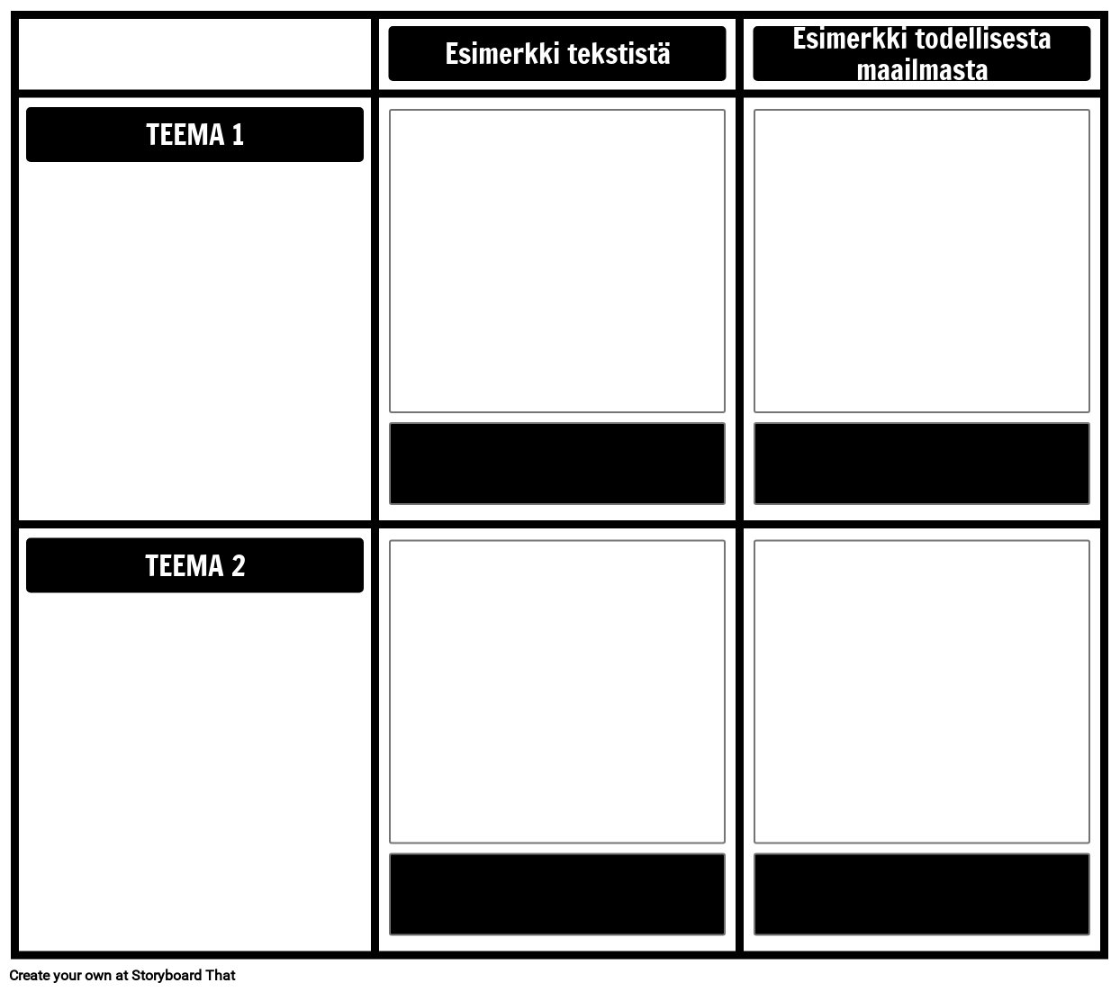 Kuvakäsikirjoitusmallit teematoiminnalle: esimerkki todellisesta maailmasta ja esimerkki tekstistä